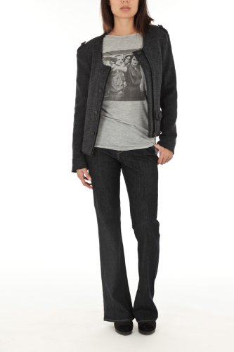 Freeman t.porter tee shirt trista bleu gris vintage col rond amplemanches courtes à revers impression sur poitrine composition : 100% coton